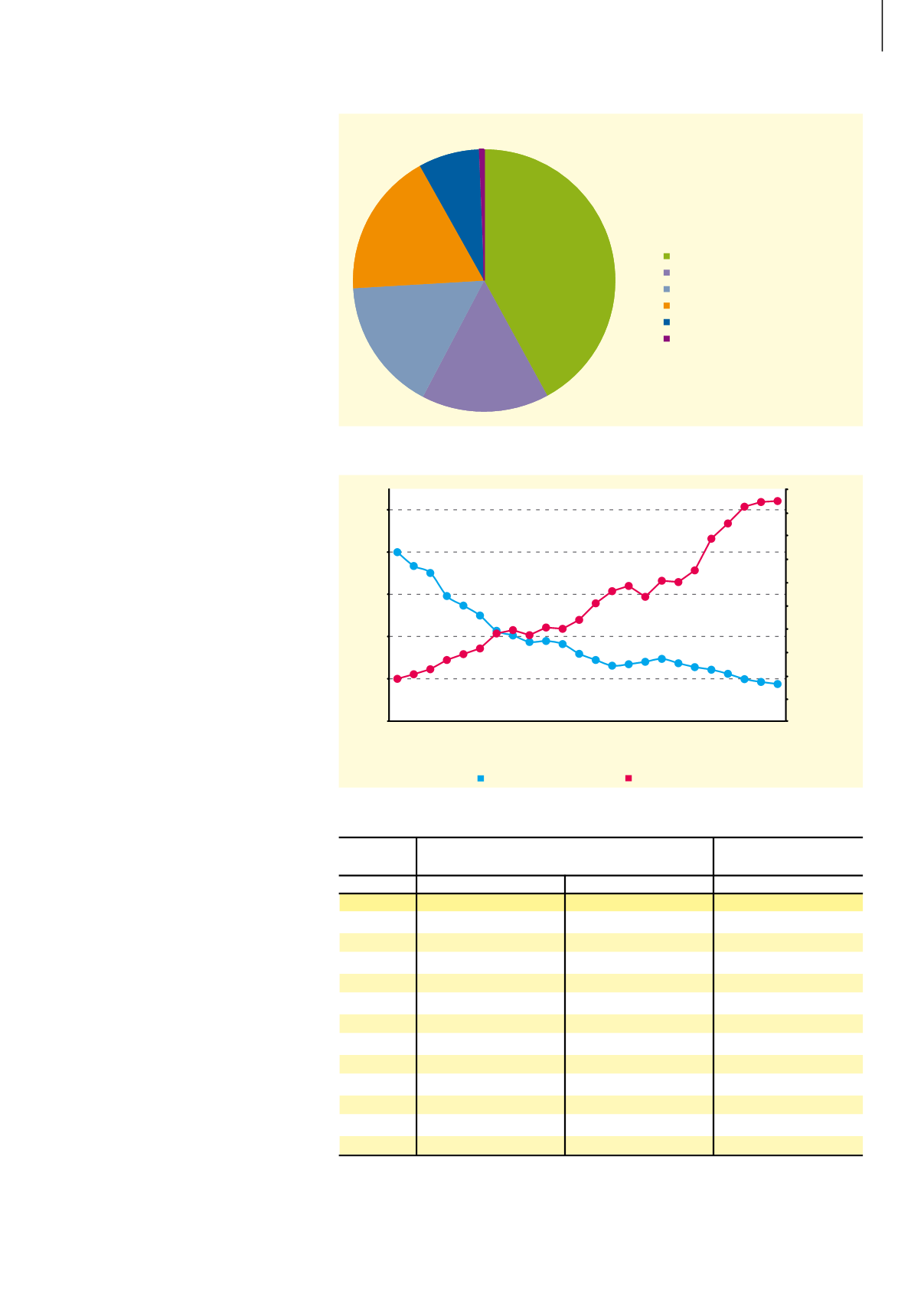 año, composición porcentual de los